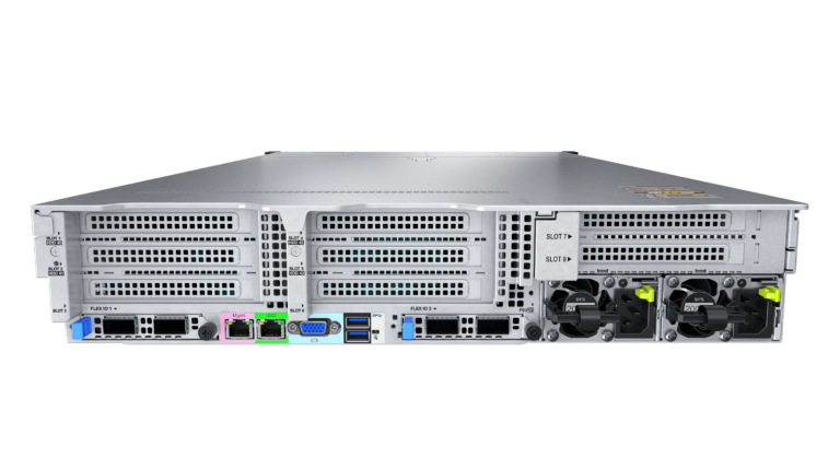 Até 19 slots PCIe: 2 slots FlexIO dedicados para NICs OCP 3.0 e 17 slots de expansão PCIe padrão, dos quais 14 slots suportam PCIe 5.0