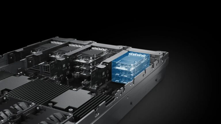 Há suporte para NICs OCP 3.0. Os dois slots de placa FlexIO suportam duas NICs OCP 3.0, que podem ser configuradas conforme necessário. Há suporte para troca a quente